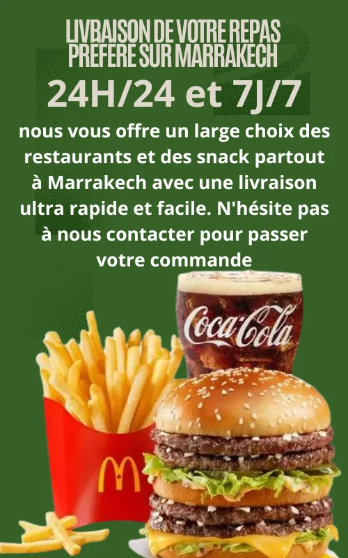Livreur Marrakech, vous avez garanti un service de livraison à domicile rapide et moins chère dans tous les quartiers sur Marrakech et les alentour. Vous pouvez commander votre médicament au de votre repas préféré en ligne, par téléphone, au via WhatsApp dans plusieurs restaurants comme McDonald's, Burger king, Quick, KFC, Pizza Hut et d'autres plus.